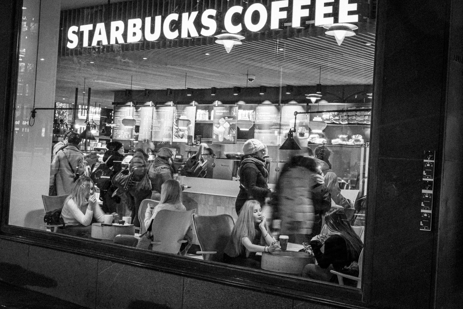 Starbucks Coffee in Helsinki Finland 2014. Simulated analog Trix film